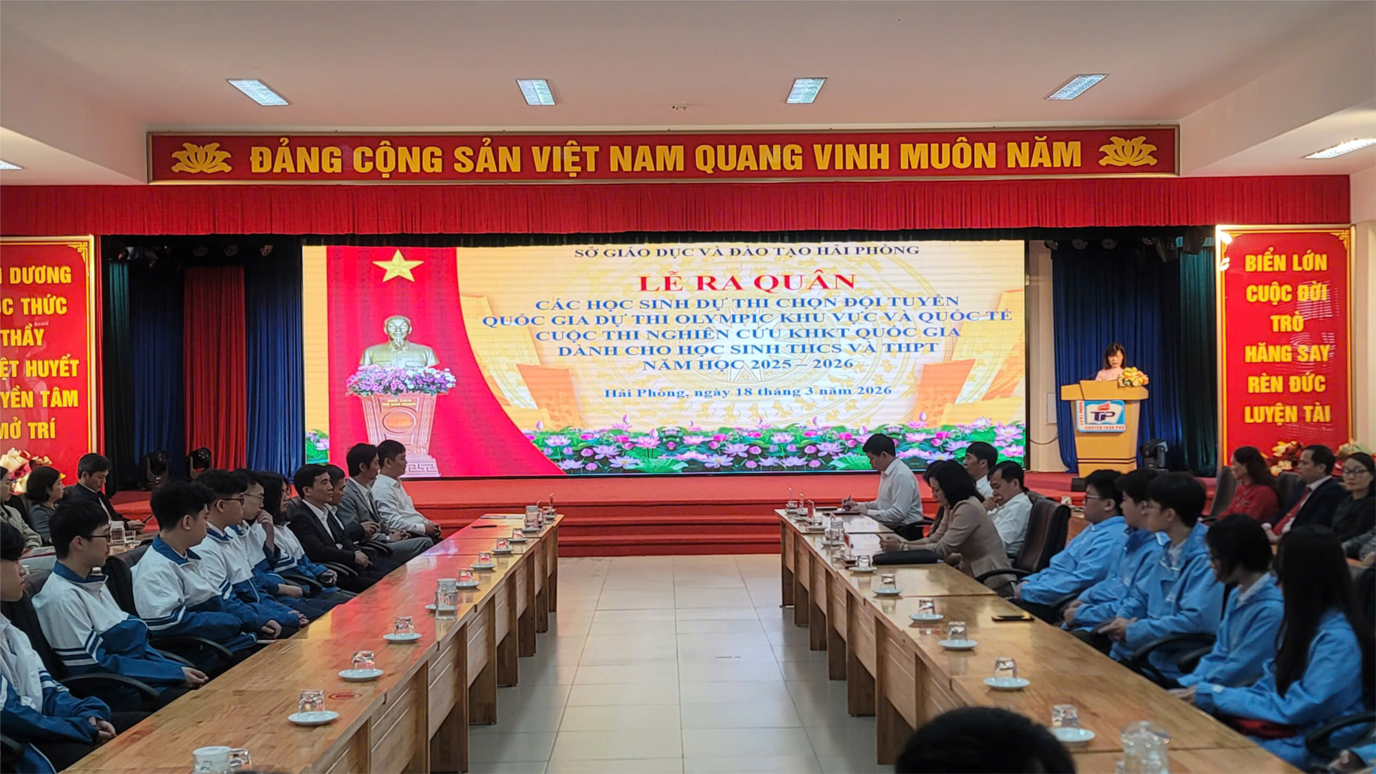 Tham dự buổi lễ có ông Lương Văn Việt – Giám đốc Sở Giáo dục và Đào tạo Hải Phòng, cùng các đồng chí lãnh đạo Sở, đại diện các phòng ban chuyên môn; Ban Giám hiệu các nhà trường có học sinh tham dự; quý thầy cô giáo, các bậc phụ huynh và đặc biệt là các em học sinh ưu tú – những gương mặt tiêu biểu đại diện cho trí tuệ và khát vọng chinh phục đỉnh cao tri thức của thành phố.