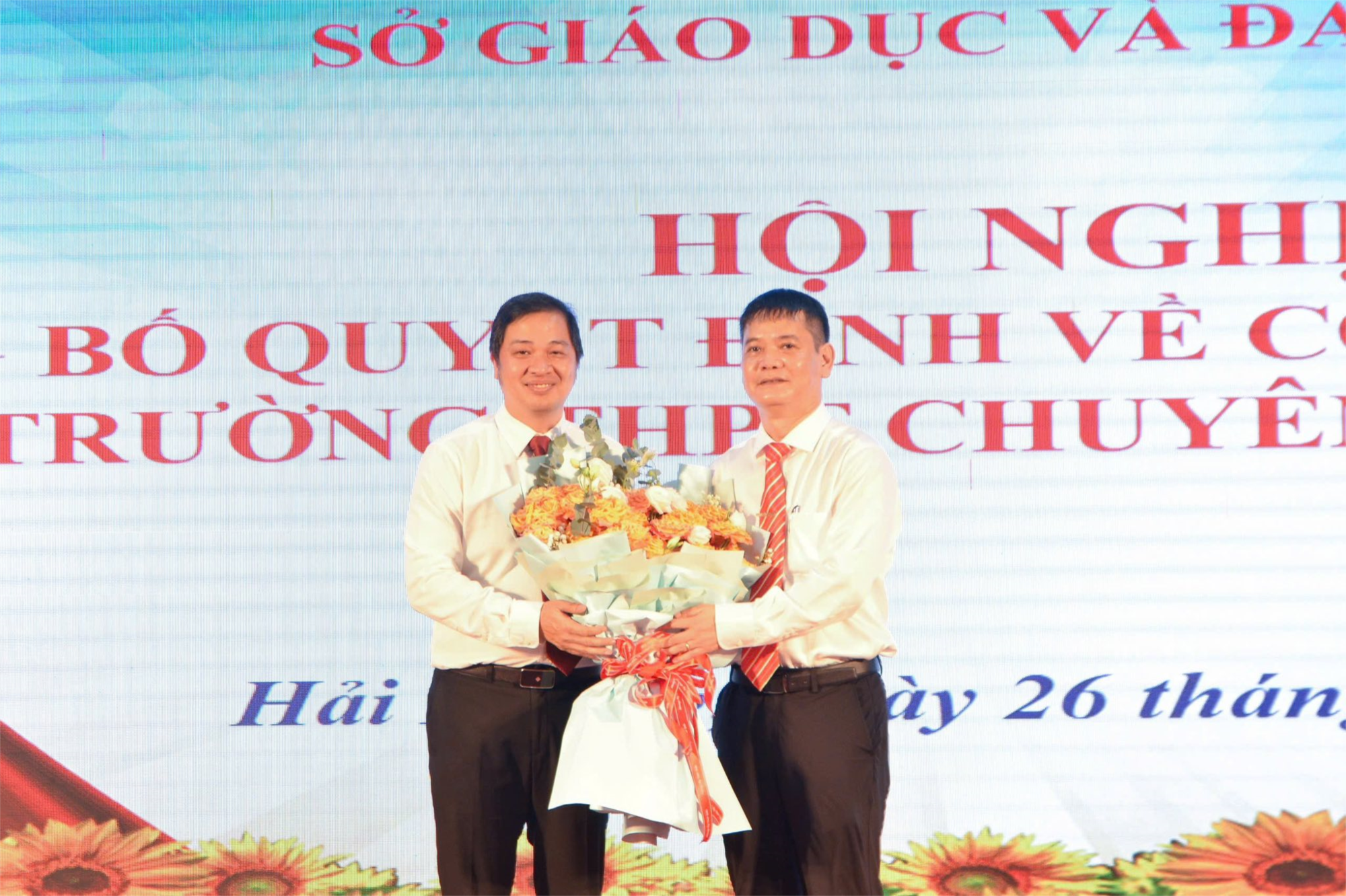 Chiều ngày 26/8, Hội nghị công bố Quyết định về công tác cán bộ trường THPT Chuyên Trần Phú đã được long trọng tổ chức tại Hội trường tầng 4. Với sự tham dự của đại diện Sở Giáo dục và Đào tạo thành phố Hải Phòng, Ban Giám hiệu cùng toàn thể cán bộ, giáo viên và nhân viên nhà trường, buổi lễ đã đánh dấu một hành trình mới của mái nhà Chuyên Trần Phú. Tại hội nghị, ông Lương Văn Việt - Giám đốc Sở GD&ĐT Hải Phòng đã công bố Quyết định Bổ nhiệm Thầy Hoàng Anh Tuấn giữ chức vụ Hiệu trưởng trường THPT Chuyên Trần Phú nhiệm vụ 2025-2030.